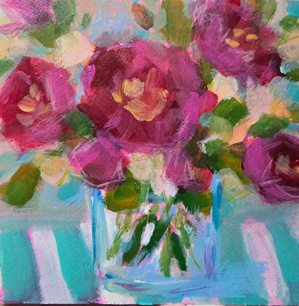 Floral painted in acrylic on 8x8 inch 140lb cold pressed watercolor paper