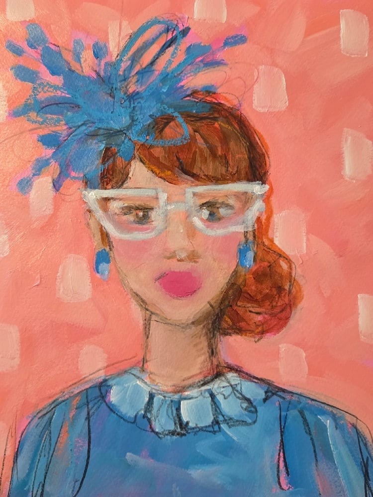 Lady painted in acrylic with pencil and pastels on 11x14 140lb cold pressed watercolor paper