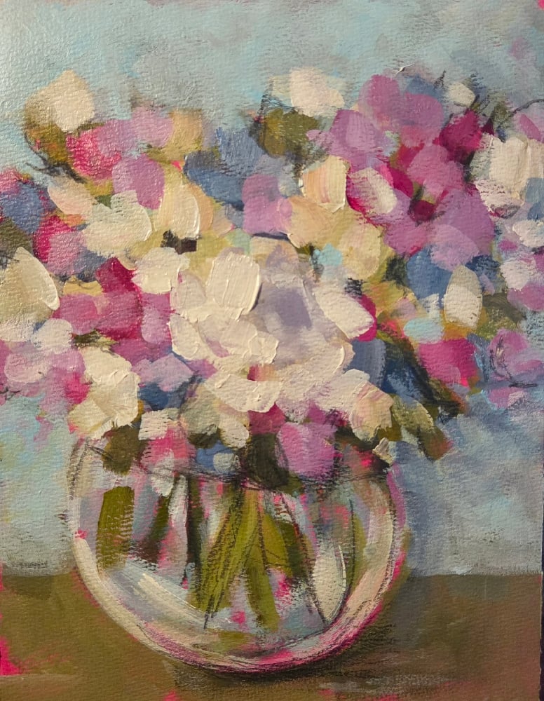 Floral painted in acrylic on 9x12 inch 140lb cold pressed watercolor paper