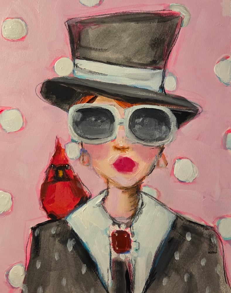 Lady painted in acrylic and pencil on 11x14 140lb cold pressed watercolor paper
