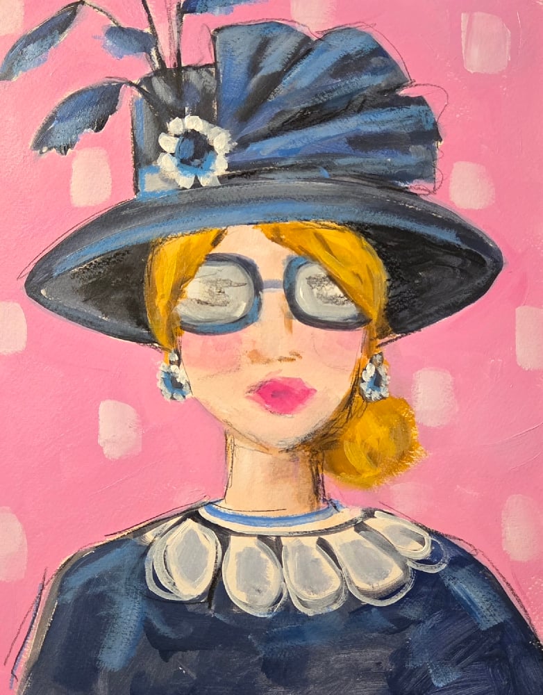 Young lady painted in acrylic with charcoal markmaking on 11x14 140lb cold pressed watercolor paper