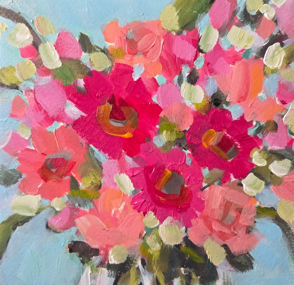 Floral painted in acrylic on 8x8 inch 140lb cold pressed watercolor paper