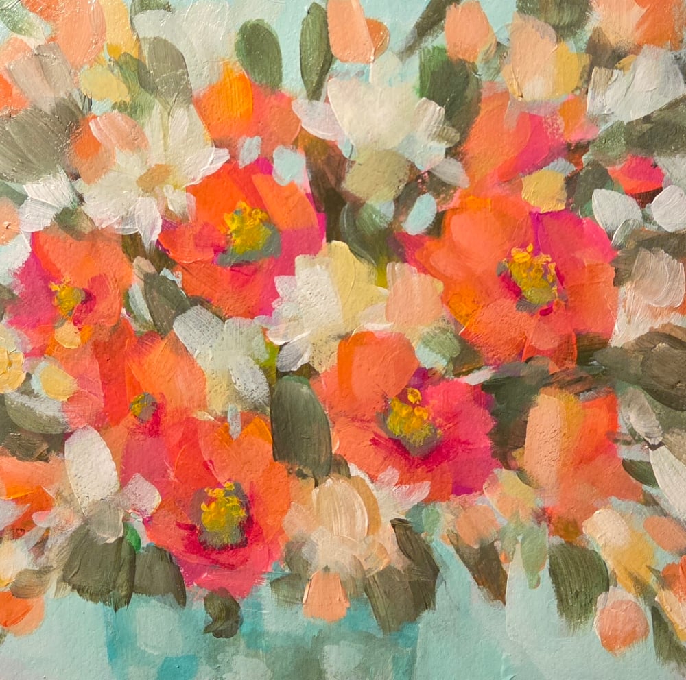 Floral painted in acrylic on 8x8 inch 140lb cold pressed watercolor paper