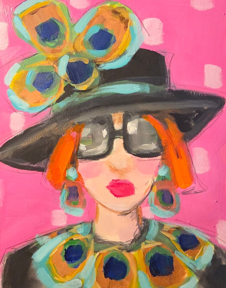 Lady painted in acrylic on 11x14 140lb cold pressed watercolor paper